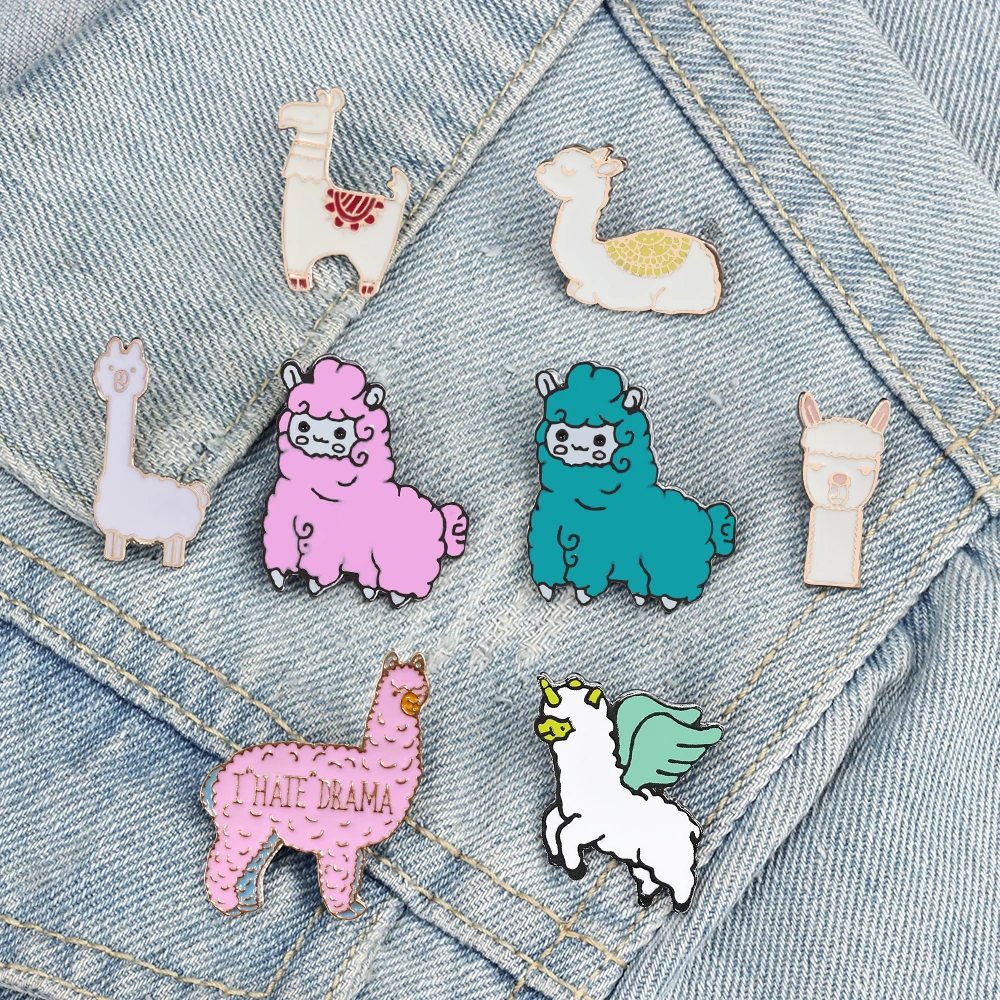 Cartoon Animal Alpaca Brooch for Kids Girls Lovely Llama Sheep Lapel Pins Denim Backpack Shirts Collar Enamel Badge Jewelry Gift