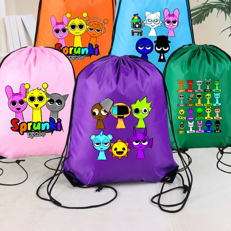 Sprunkis Drawstring Bag Cute Anime Canvas Print Boy Girl Portable Pocket Kids Adult Party Gift Game Hand Bag Case Storage Pouche