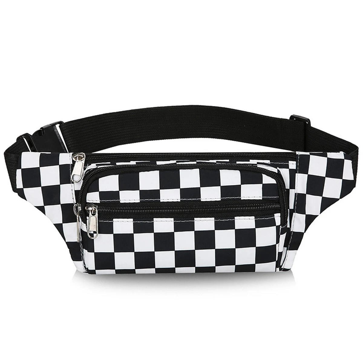 Large Capacity Waterproof Outdoor Sports Waist Bag Men's and Women's Black and White Plaid Mobile Phone Bag Student Waist Bag