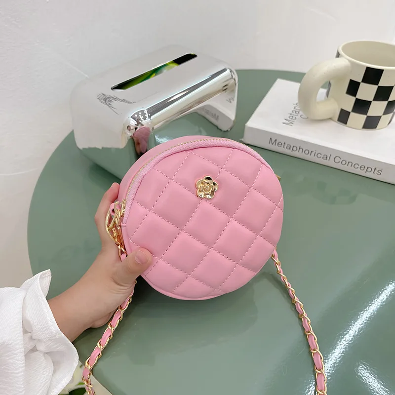 Cute Children's Round Shoulder Bags Lovely Mini Rhombus Plaid Girls Small Messenger Bag Princess Accessories Coin Purse Handbag