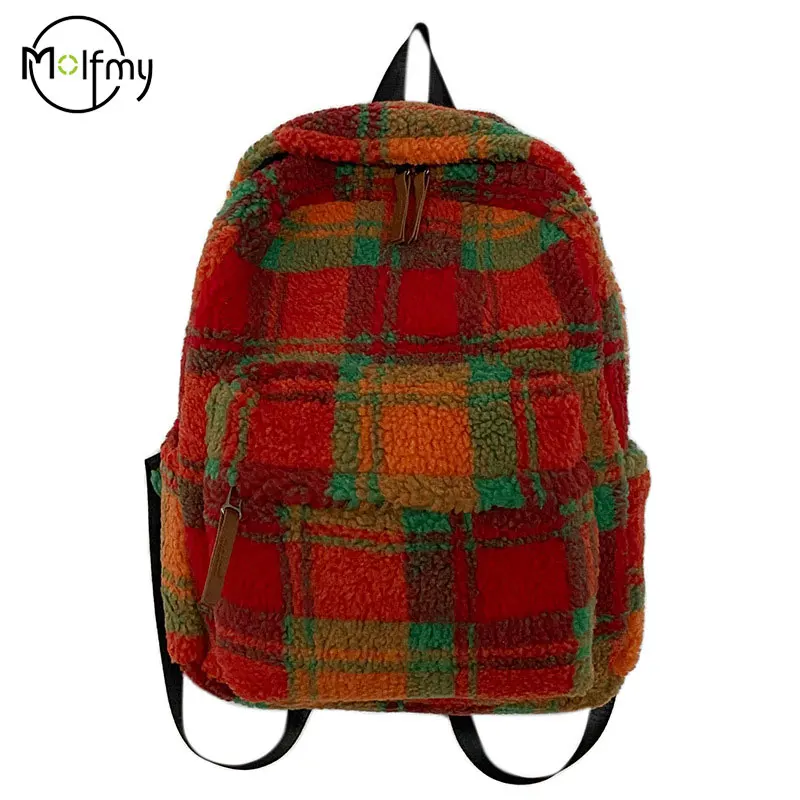 Backpacks Woman Double Strap Shoulder Bag Student Teens LargeCapacity Versatile Schoolbag Travel Rucksack Vintage Plaid Bag 2025