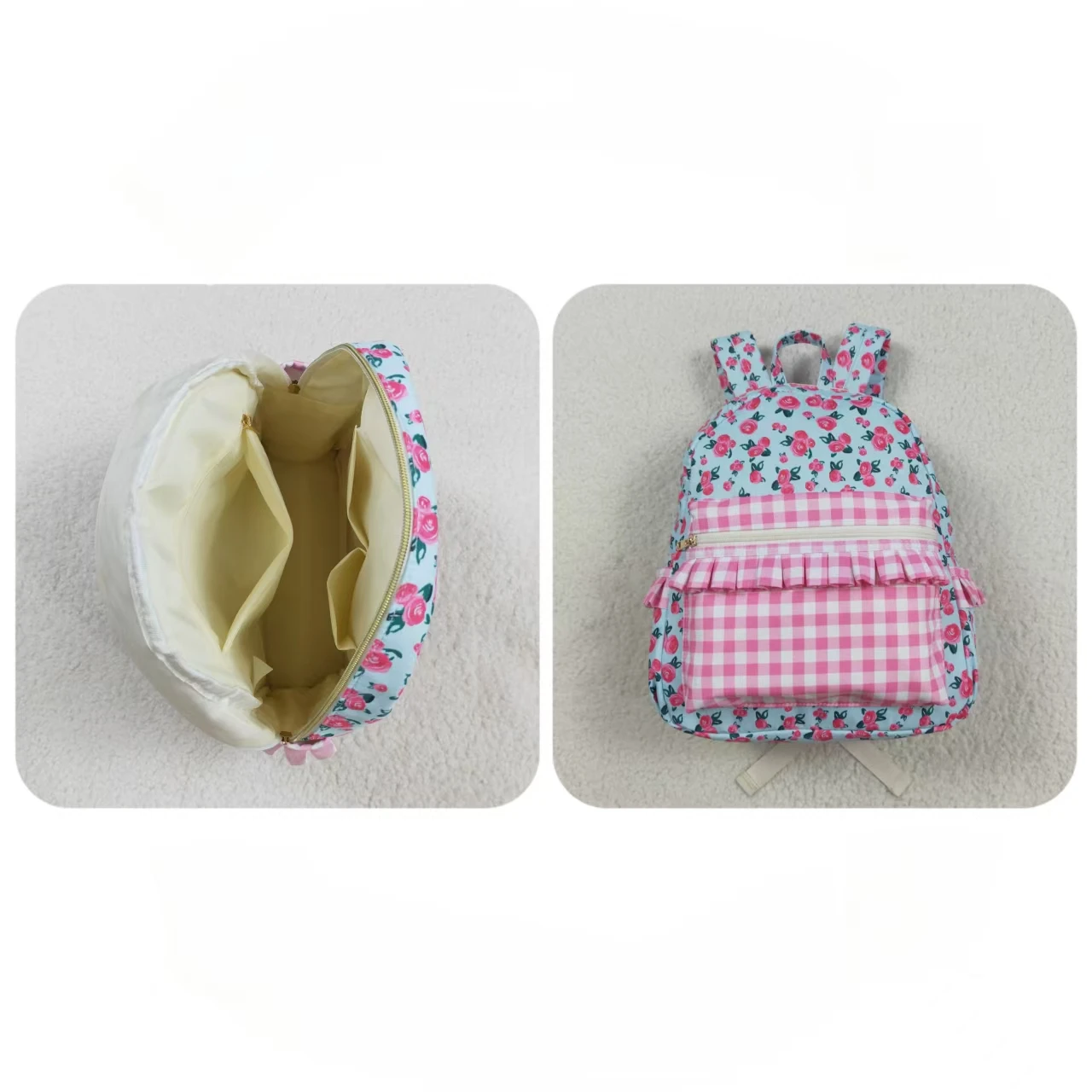 Wholesale Baby Girl Backpack Daypack Toddler Children Pink Plaid Floral Outdoor Portable Kids Girls School Zipper Ruffle Bag
