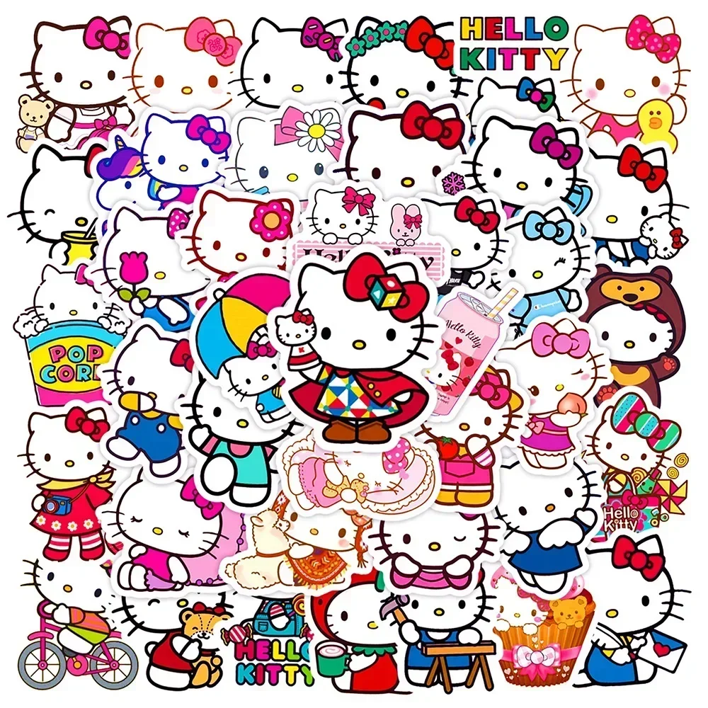 50Pcs Cute Cartoon Hello Kitty Stickers Skateboard Bicycle Guitar Laptop Scrapbooking Vinyl Waterproof Sticker Kids Toys