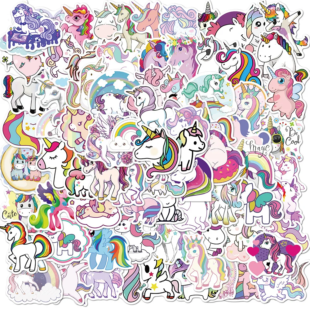 10/50/100pcs Cute Unicorns Rainbow Horse Cartoon Stickers Phone Guitar Laptop Notebook Suitcase Waterproof Sticker Kids Toys