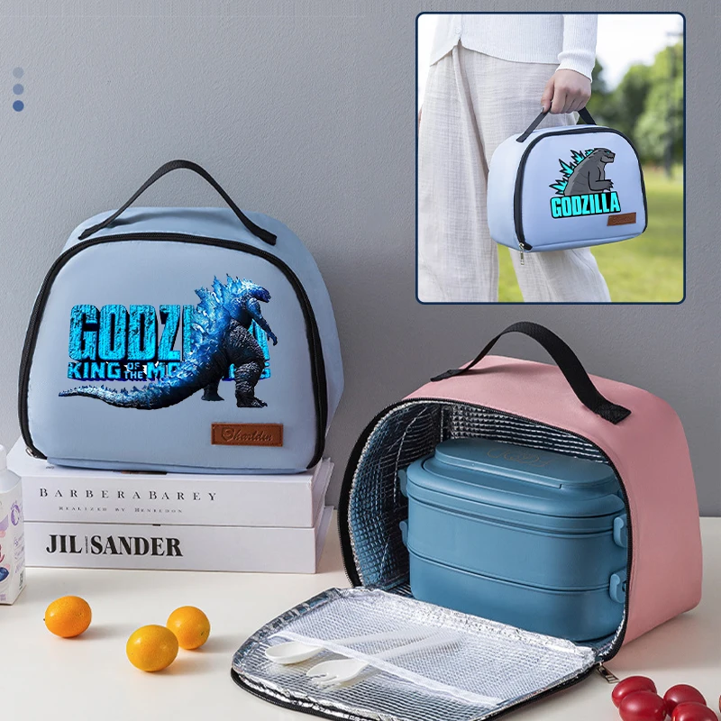 Godzilla Kong Student Insulated Lunch Hand Bag Cartoon Pack Lunch Box Adults Office Thermal Insulation Case Tote-Bag Bento Boxes
