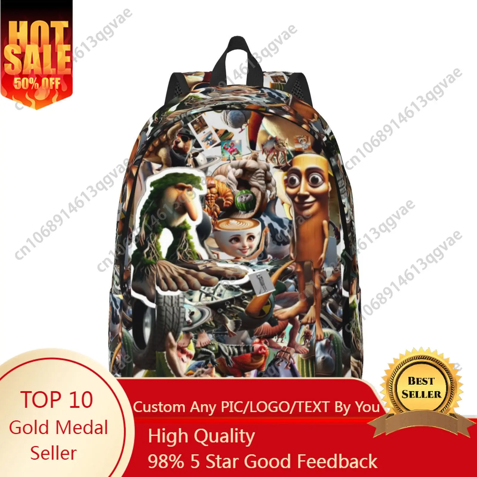 Abstract Italian Brainrot AI Custom Canvas Lightweight Backpack Fashion Durable Student Men Women Business Daypack