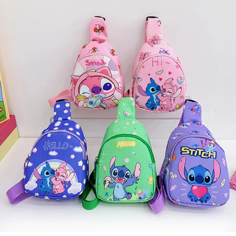 Kids Stitch & Angel Kids Sling Bag 2025 New Cartoon Crossbody Chest Bag for Boys Girls, Fashion Shoulder Purse with Coin Pocket