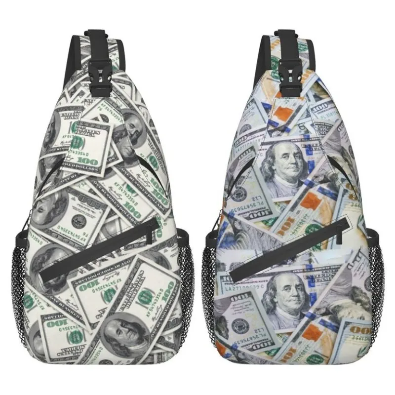 United States Dollar Banknotes Sling Crossbody Chest Bag Men Cool US Money Pattern Shoulder Backpack for Traveling