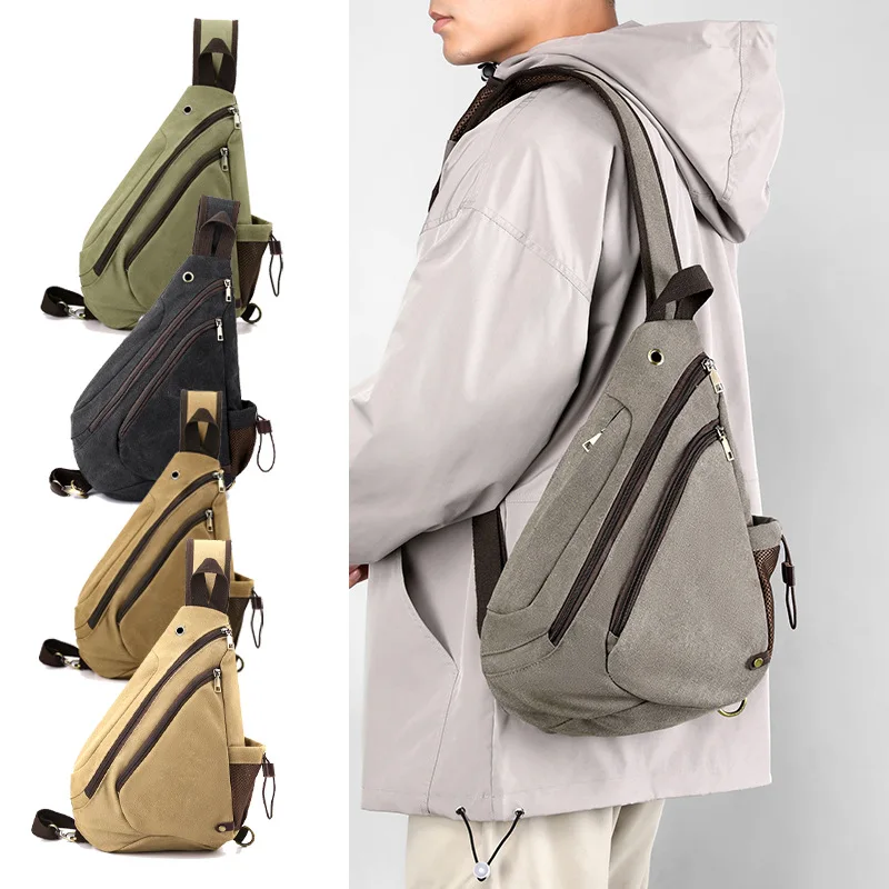 Men's Casual Canvas Shoulder Bag Crossbody Phone Pouch Small Backpack Leisure Tote Handbag for Men