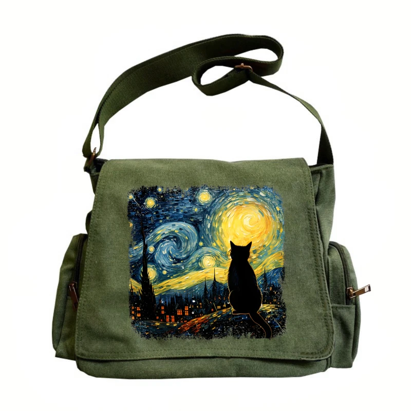 Retro Women's Shoulder Bag Men's Messenger Bag Canvas Crossbody Bag Cat Print Large Capacity Laptop Bag