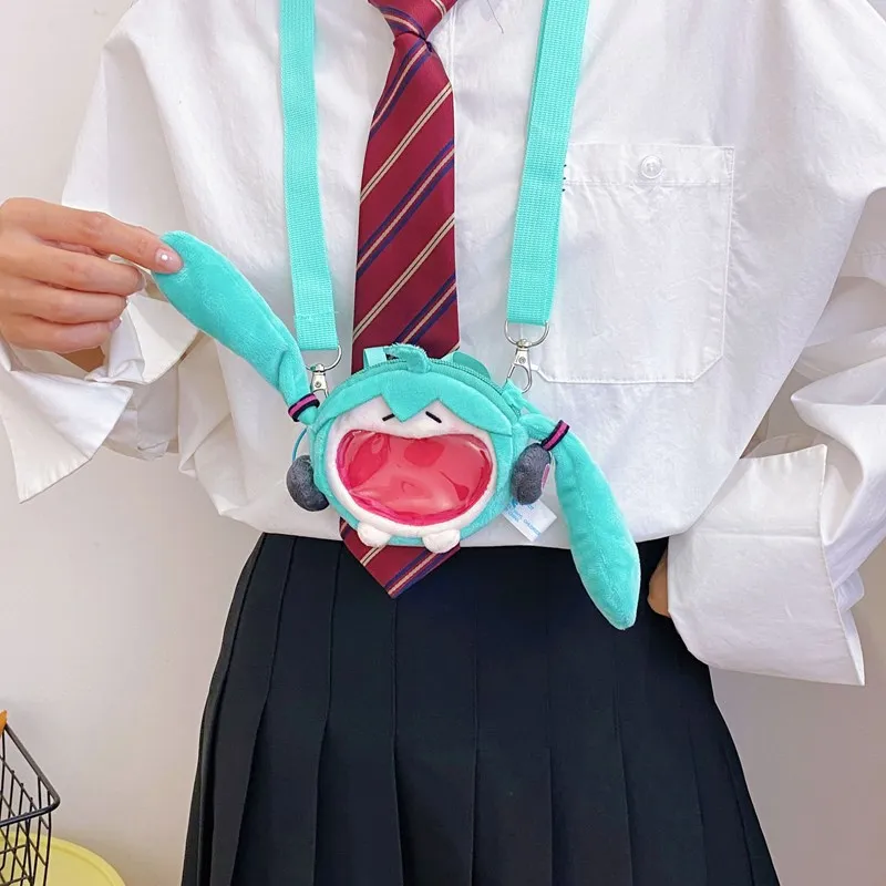 Anime Hatsune Miku kawaii Mini Small shoulder bag Card bag Change coin pack Cartoon Big Mouth Bag doll Toys decorate Gifts