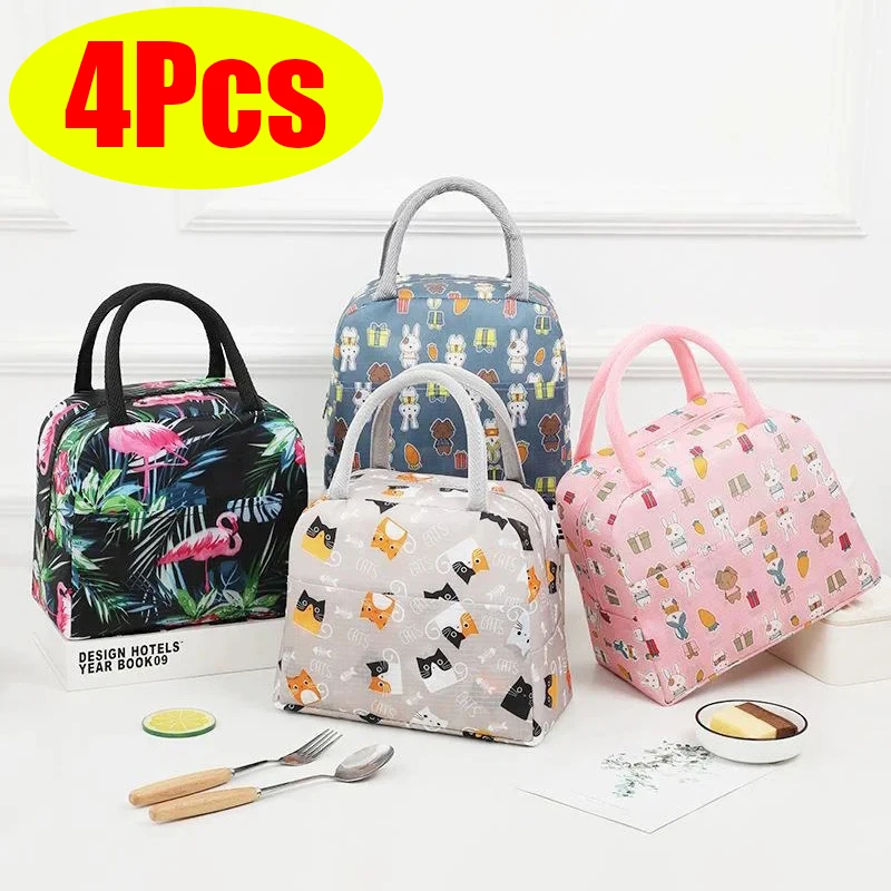 Lunch Bag Thermal Insulation Cartoon Cute Cat Print Lunch Box Pouch Large Capacity Picnic Waterproof Children School Bento Bags