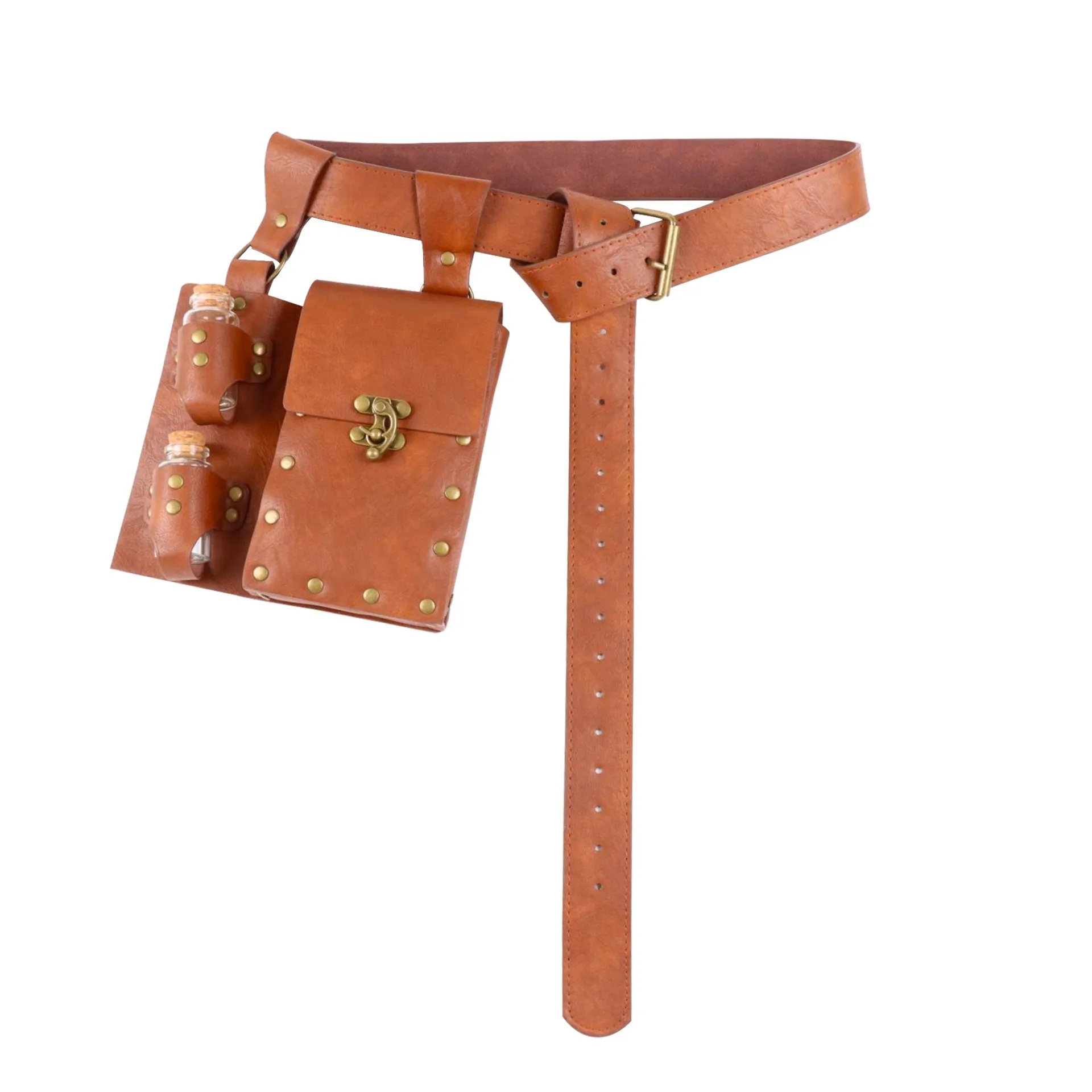 Medieval Leather Waist Bag with 2 Corked Potion Bottle and Belt, for Halloween Medieval Leather Side Pack Wizard Waist Bag LARP