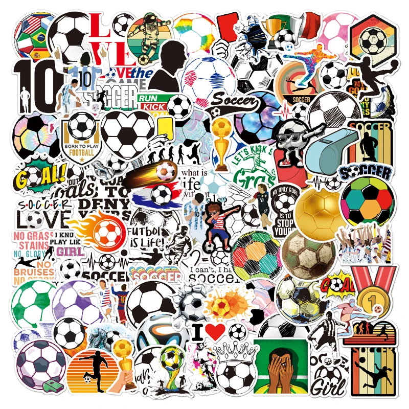 100 PCS Cute Soccer Stickers Sports Decals Vinyl Waterproof for Laptop Skateboard Helmet Guitar Phone Case Luggage