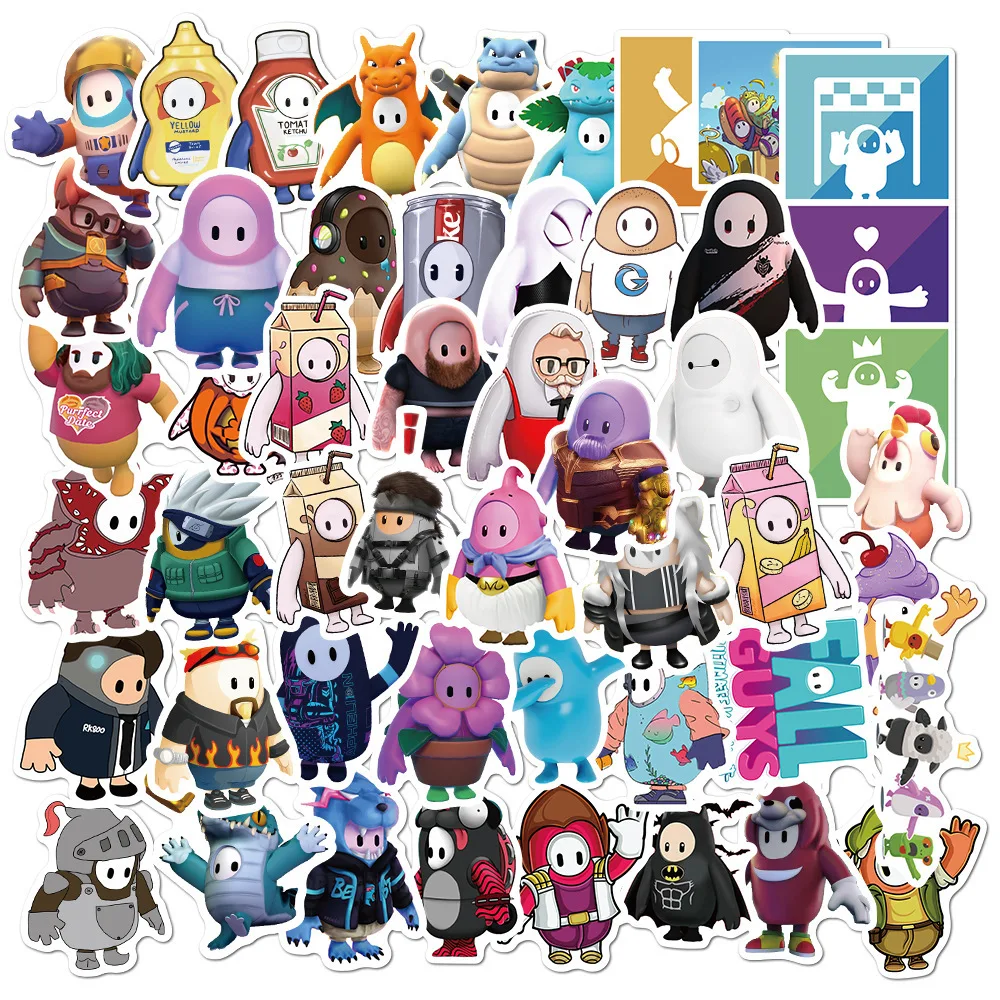 50Pcs Fall Guys Stickers for Laptop Bumper Water Bottles Computer Phone Case Motorcycle Bike Skateboard Luggage Hard Hat Vinyl