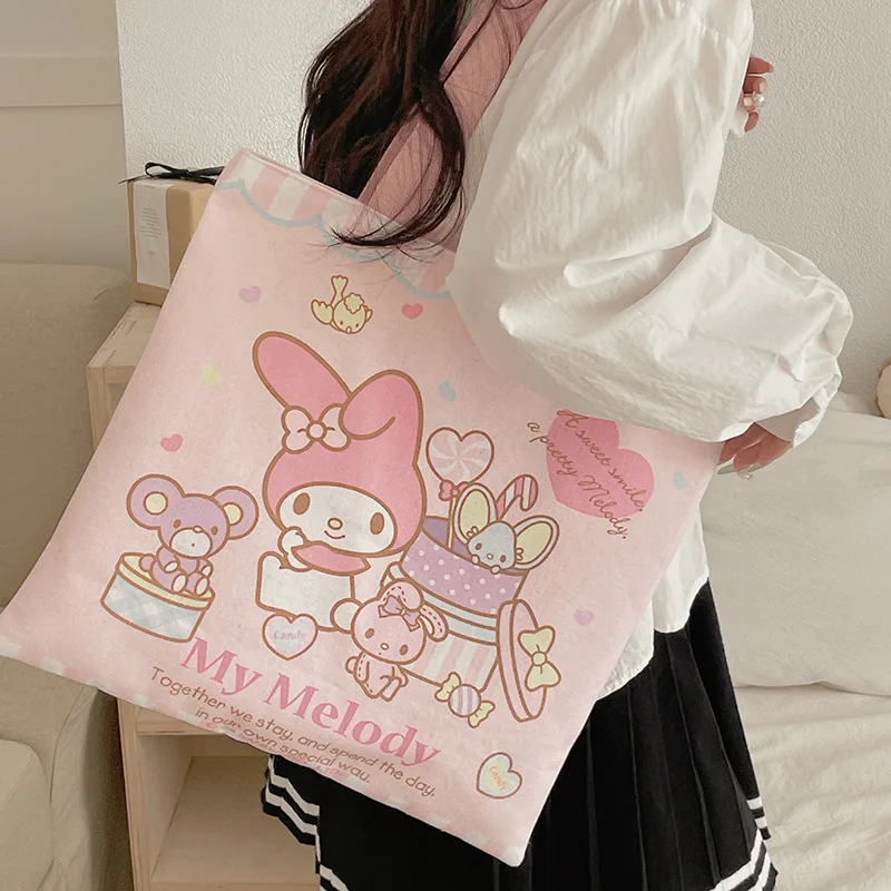 Sanrio Hello Kitty Kuromi Cinnamoroll Manga Style Canvas Bag The Single Shoulder Bag Large Capacity Shopping Bag Gift for Girls