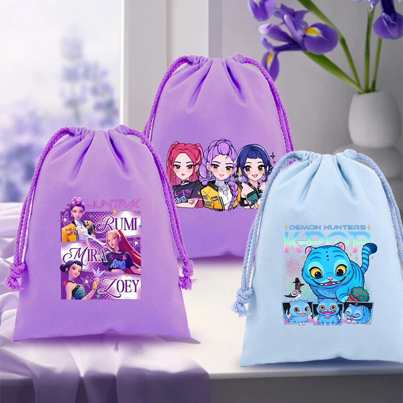 Demone Hunter Trend Drawstring Bag Y2K Kawaii Anime Canvas Print Pouch Kids Girl Portable Cute Party Candy Toys Gift Hand Pocket