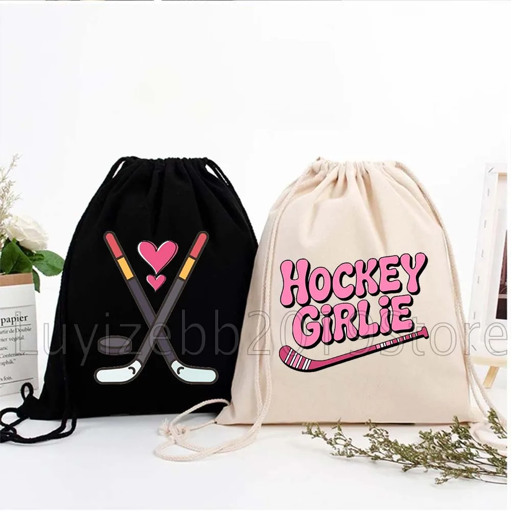Ice Hockey Girl Hockey Player Lover Gifts Canvas Drawstring Bags Soccer Backpack Gym Sackpack Hiking Sports Gym Yoga String Bag