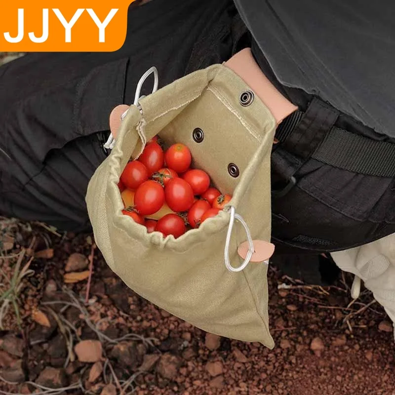 Collapsible Canvas Foraging Bag Berry Mushroom Picker Drawstring for Camping Hiking Outdoor Gear