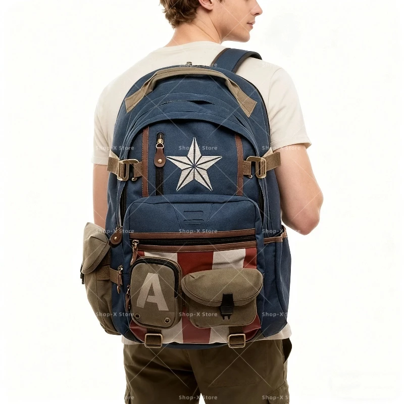 Marvel Captain America Backpack Daypack - Large Capacity Canvas School Bag For Teens Trendy Superhero Gift For Boys & Girls