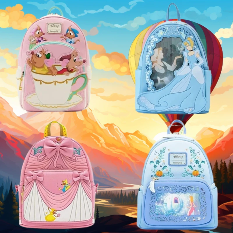 Loungefly Cinderella Series Gus and Jaq Teacup 70th Anniversary Lenticular Princess Mini Backpack