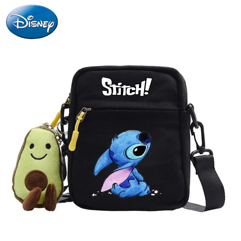 Disney 2025 New Cartoon Stitch Cute Print Pattern Shoulder Bag Color Simple Canvas Messenger Four-color Small Square Bag