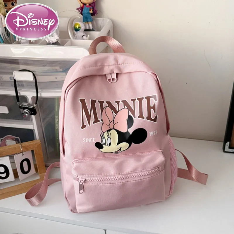 Disney 2025 New Cute Cartoon Minnie Backpack Casual Versatile Large Elementary School Bag Little Girl Travel Backpack