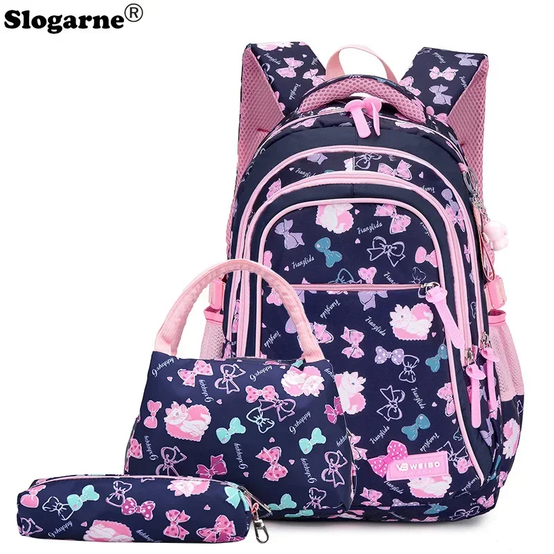 New 3pcs/set Bow Print School Bags for Teen Girls Primary Waterproof School Bags Kids Student Princess Backpack Mochila Infantil