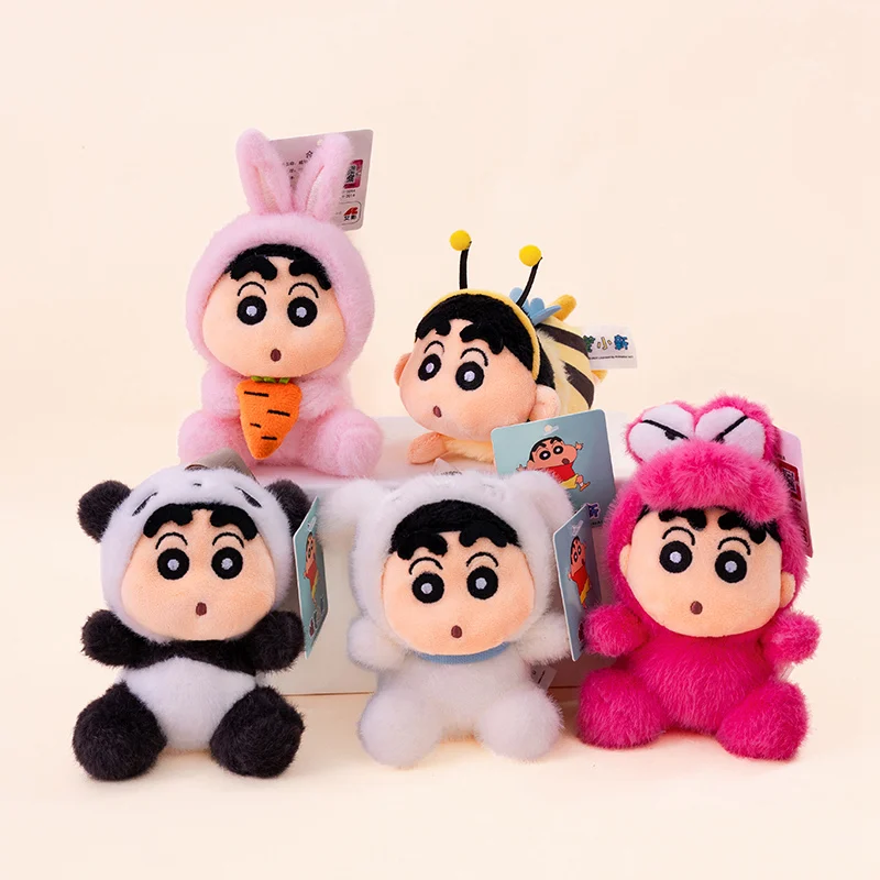 Crayon Shin-chan Turn Into Dog Bee Crocodile Rabbit Panda Plush Pendant Keychains Kawaii Girls Backpack School Bag Plush Pendant