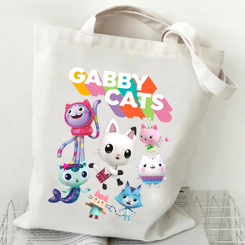 New Gabby Dollhouse Canvas Bag Cotton Cute Anime Shopping Tote Pouch Commuter Student Travel Simple Versatile Fashion Bags Gift