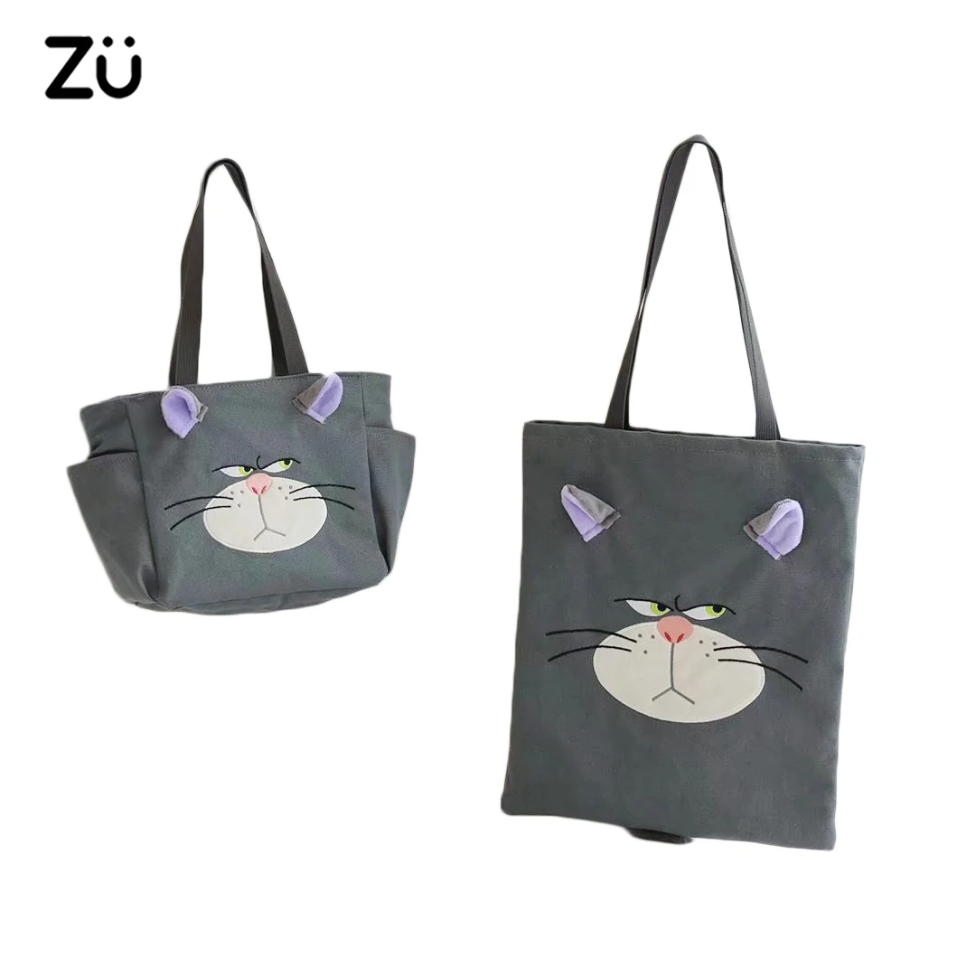 ZU 1pcs Cat Plush Backpack Cartoon Cute Canvas Shoulder Bag for Shopping Lunch Time