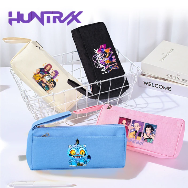Move K-Pop Demon Hunters Pencilcase Canvas Large Capacity Cute Pencil Bags Fashion Cartoon Zipper Students Back To School Gifts