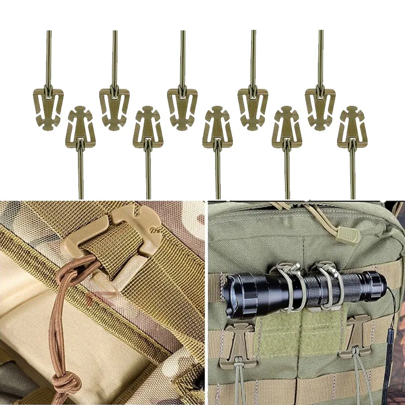 10pcs Tactical Gear Clip Molle Elastic Strap Tactical Gear Carabiner Clips Outdoor Hydration Tube Backpack MOlle Attachments