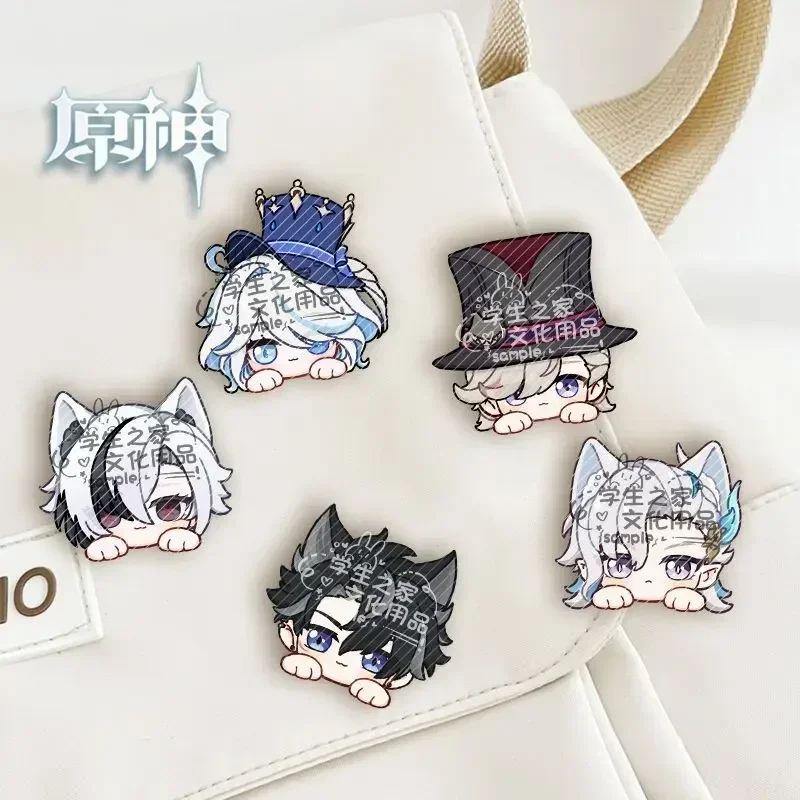 Game Impact Fontaine Neuvillette Wriothesley Rabbit Ears Small Hands Acrylic Badge Backpack Button Brooch Accessories Gifts