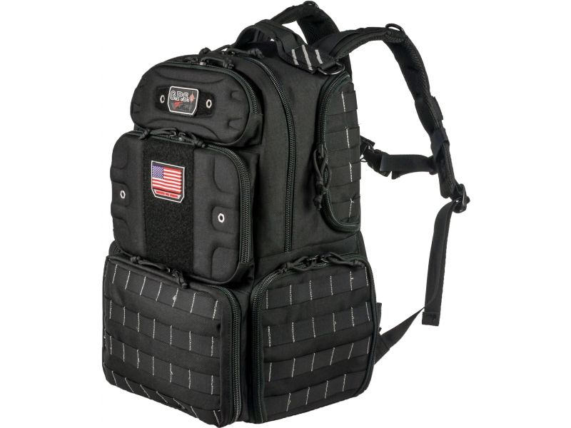 GPS Tall Tactical Range Backpack Holds 4 handguns-Molded Pocket Prym1 Blackout GPS-T1913BPPMB