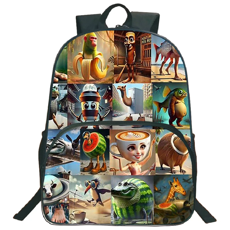 Cute Italian Brainrot Print 16inch School Bag Backpack Large Capacity School Students Backpack for Kids Boys Waterproof Knapsack