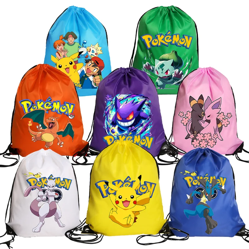 Pokemons Pikachu Drawstring Bag Sports Waterproof Backpack Bundle Pocket Basketball Bags Gengar Mewtwo Anime Boys Birthday Gift