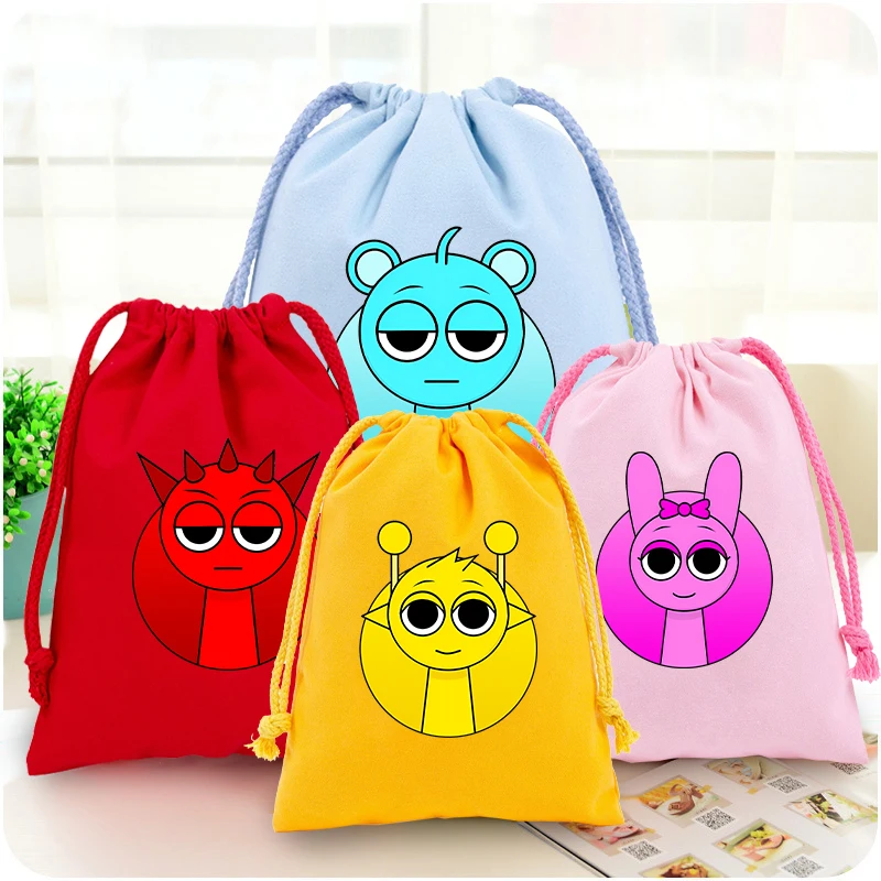 Sprunki Drawstring Bag Cotton Cute Cartoon Canvas Bags for Candy Gifts Package Pouch Anime Printed Children's Toys Organize Bag  Read more