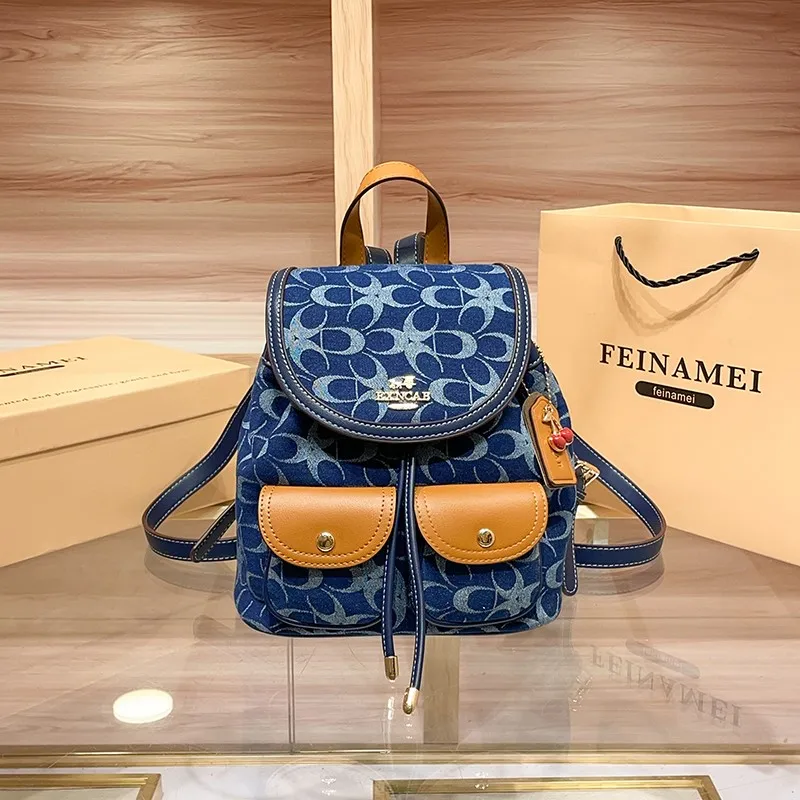 Ladies' backpacks, light luxury retro denim canvas bags, fashionable 2025 new models, high-end commuting, large-capacity backpac