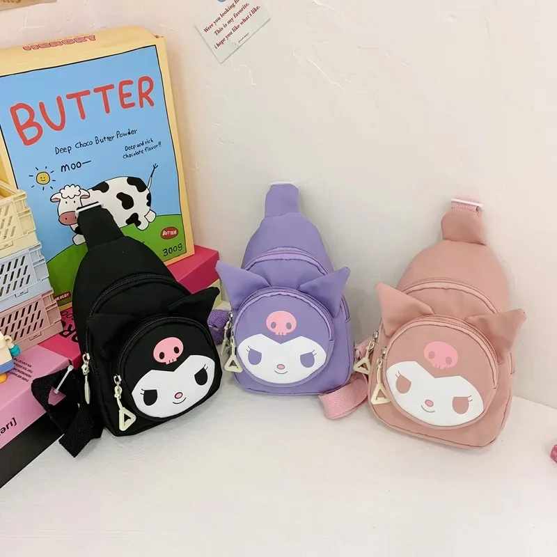 Sanrio Kawaii Kuromi Chest Bag Cartoon Shoulder Bag Sling Backpack Children Boys Girls Crossbody Bag Nylon Storage Pouch