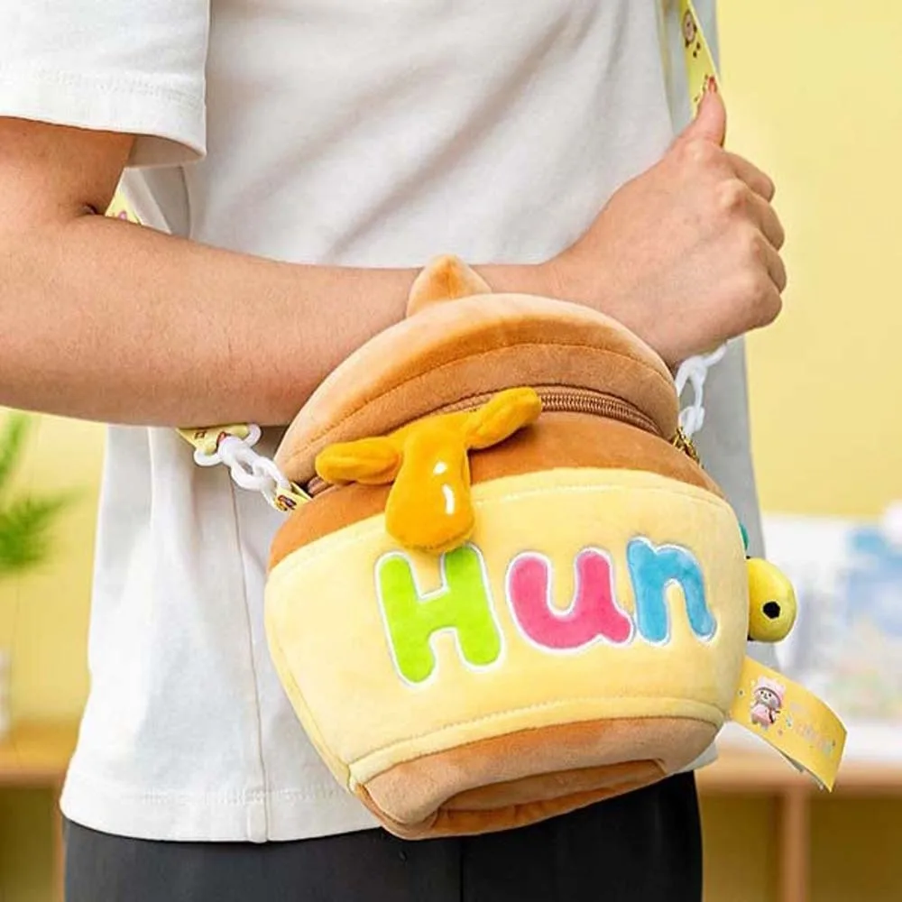 Creative Cute Honey Jar Crossbody Bag Soft Embroidered Honey Pot Shoulder Pouch Polyester Lightweight Yellow Cartoon Bag Daily  Read more
