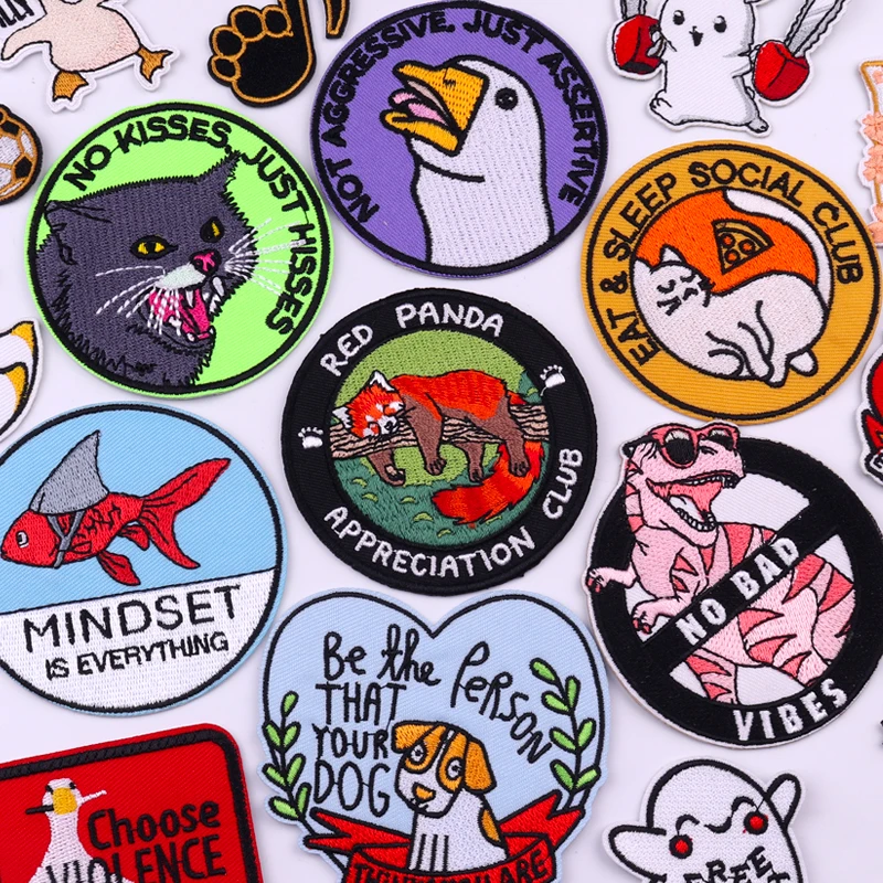 Round Funny Animal Patch Fox Cat Duck Fish Embroidered Patches For Clothes Jacket Backpack Iron On Patches For Clothing Stickers  Read more