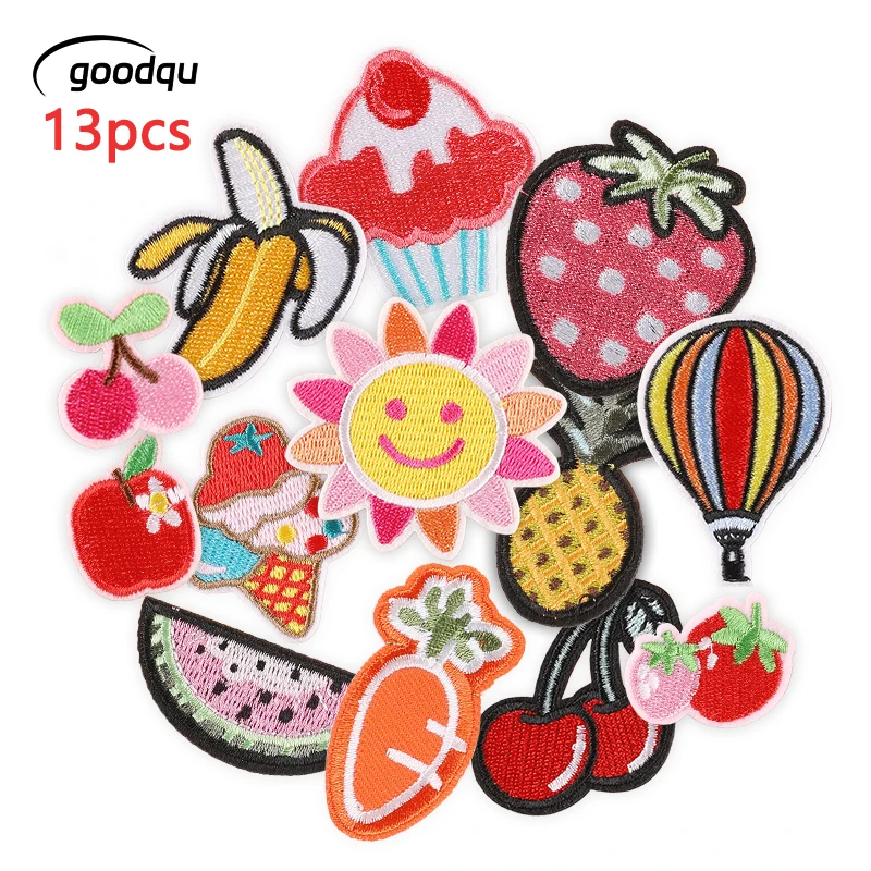 13pcs Sun Fruit Embroidered Patch For Clothes Jacket Backpack Cute Iron On Girls Kids Sewing Fabric Anime Lot Thermal Parches