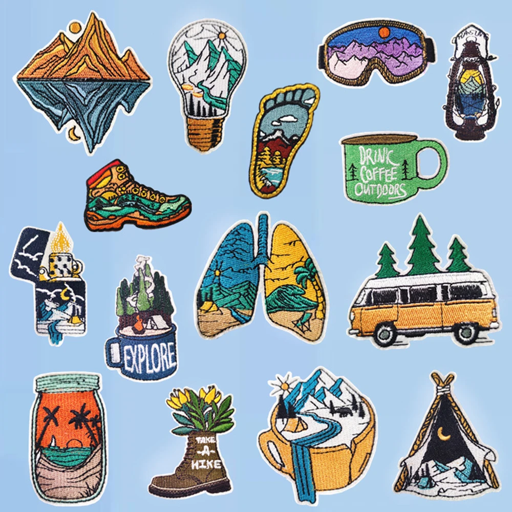Camping Sunglasses Boy Scout Tent Mountain Backpack Embroidered Accessories Badge Patches for Clothing Embroidered Iron on Bag  Read more