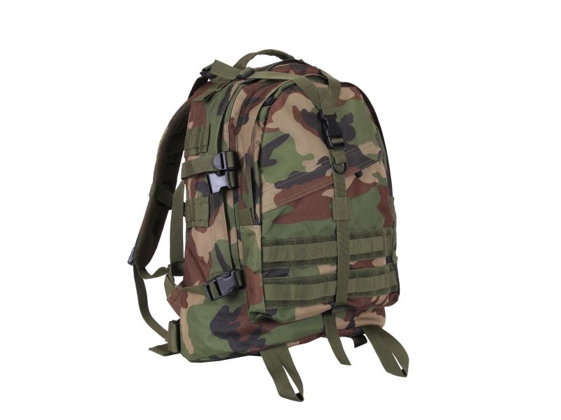 Rothco Large Camo Transport Pack Woodland Camo 7684-WoodlandCamo. The camo tactical pack measures approximately 19" X 15" X 8" and features two large compartments plus a zippered front compartment that is ideal for organizing your gear or loading...  Read more