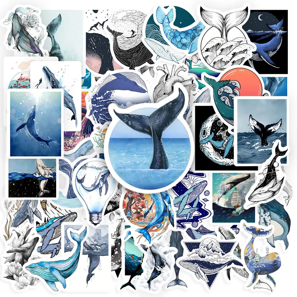 Cute Cartoon Whales Stickers Marine Animals Cool Decals DIY Skateboard Laptop Luggage Cup Bike Motorcycle Phone PVC Waterproof