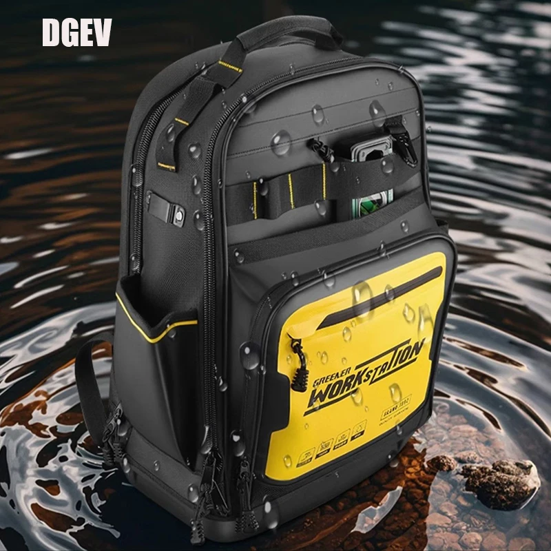 DGEV Tool Bag Men's Shoulder Backpack Multifunctional Maintenance Canvas Suitcase Electrician Tool Organizer Durable Portable