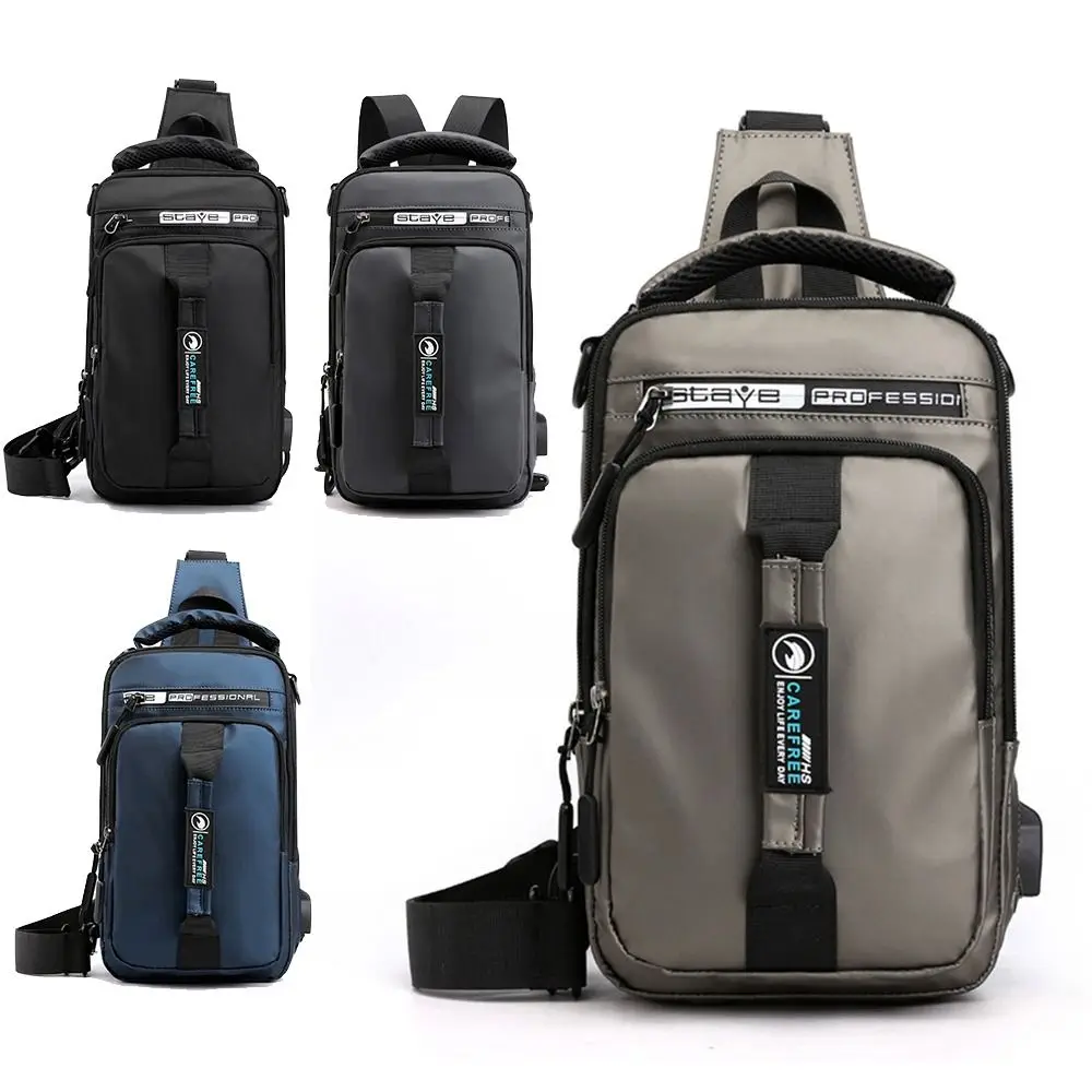 Men USB Charging Shoulder Messenger Backpack Waterproof Anti-theft Chest Bag Zipper Sport Belt Packs Outdoor Travel
