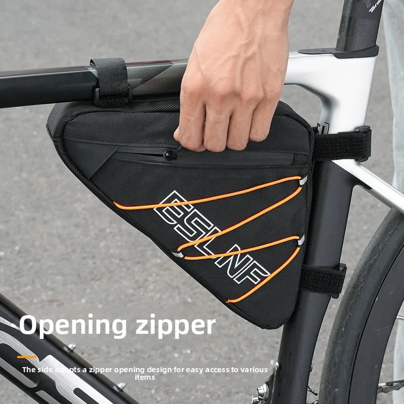 ESLNF Road Bike Triangle Bag MTB Nylon Waterproof Bike Bag Durable with Side Net Highlight The Reflective Rope Bike Bag