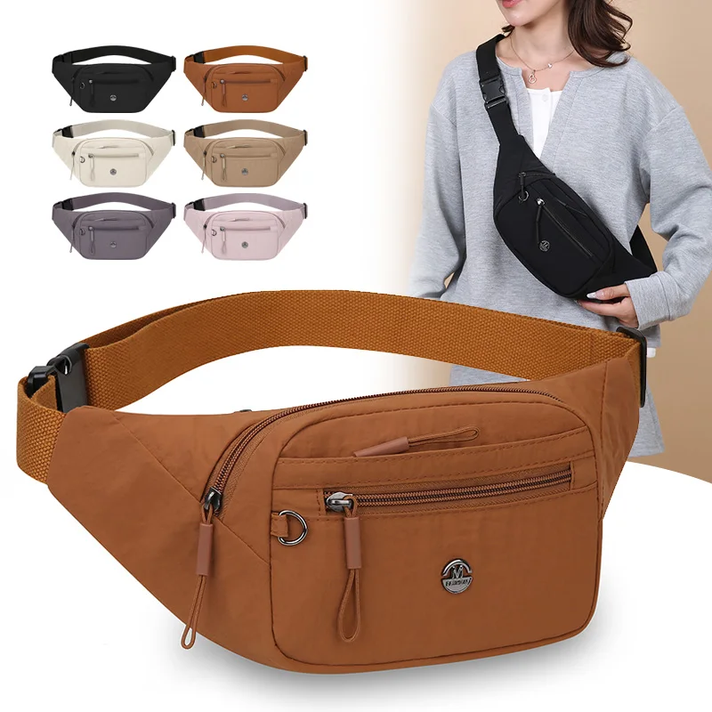 Women's Waterproof Nylon Convertible Waist Pack with Adjustable Strap Large Capacity Crossbody Chest Bag for Outdoor Activities
